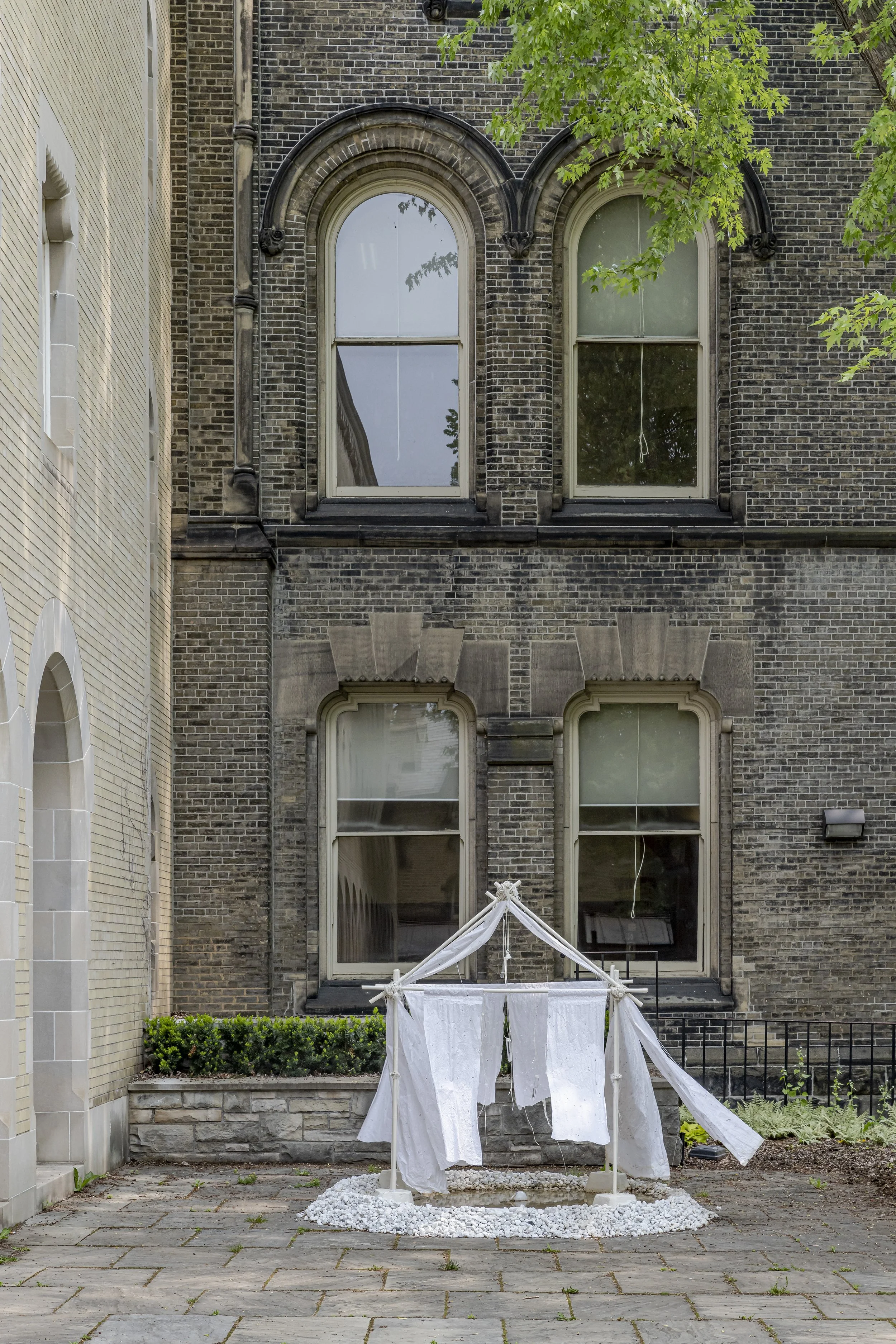 Decay, and its impacts on virtually all aspects of life, is considered in its various forms by Marli Davis, Shannon Garden-Smith, and Sara Maston in acts of preservation / acts of decay, a site-specific exhibition in the Clark Quadrangle adjacent to the Art Museum’s University of Toronto Art Centre. Invoking the tension between preservation and decay, the project draws attention to the University College courtyard as a site at once carefully maintained and susceptible to the decomposing force of the natural environment. If decay must happen, can we have a more thoughtful consideration of where it occurs and who and what it affects? How can we address the tenuous relationship between decay and preservation, and when can we begin to know when preservation must make space for decay and vice versa?